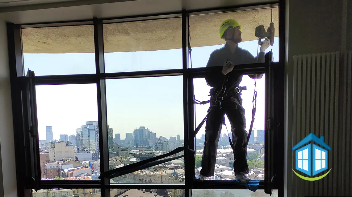 В алюмінієвому фасаді заміна склопакету здійснюється з боку вулиці. Тому потрібно створити належні умови для безпечної роботи